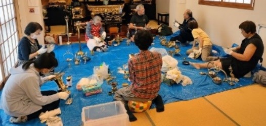 9月29日(日)午後1時より、本堂で仏具を磨きました。磨きにくい物も磨きやすい物もありますが、全てきれいに磨いて頂きました。お手伝いありがとうございました。